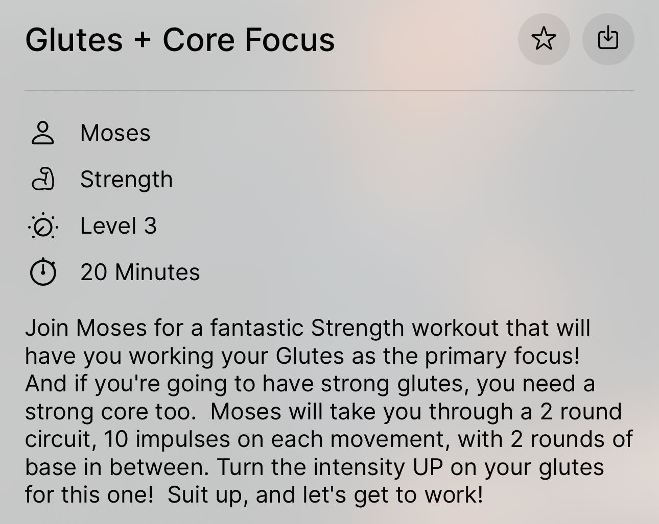 Every workout has key characteristics that are summarized in the description below the title.